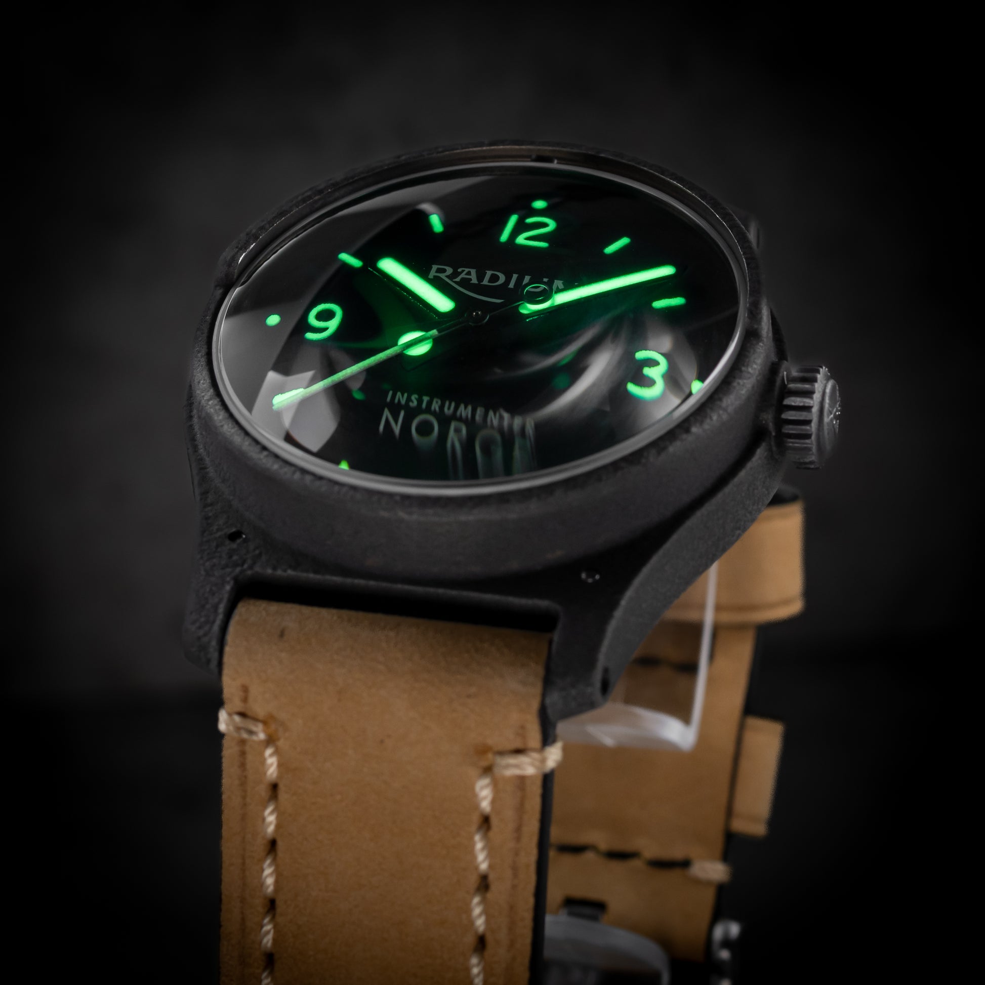 Radium Ikon ist unser erstes komplett neues Gehäusedesign seit 2014, inspiriert von historischer Handwerkskunst mit einem modernen Touch. Die markante „Schutzkappe“, inspiriert von Oldtimer- und Fahrradscheinwerfern, schützt die Uhr und verleiht diesem außergewöhnlichen Zeitmesser einen einzigartigen, historischen Charakter.