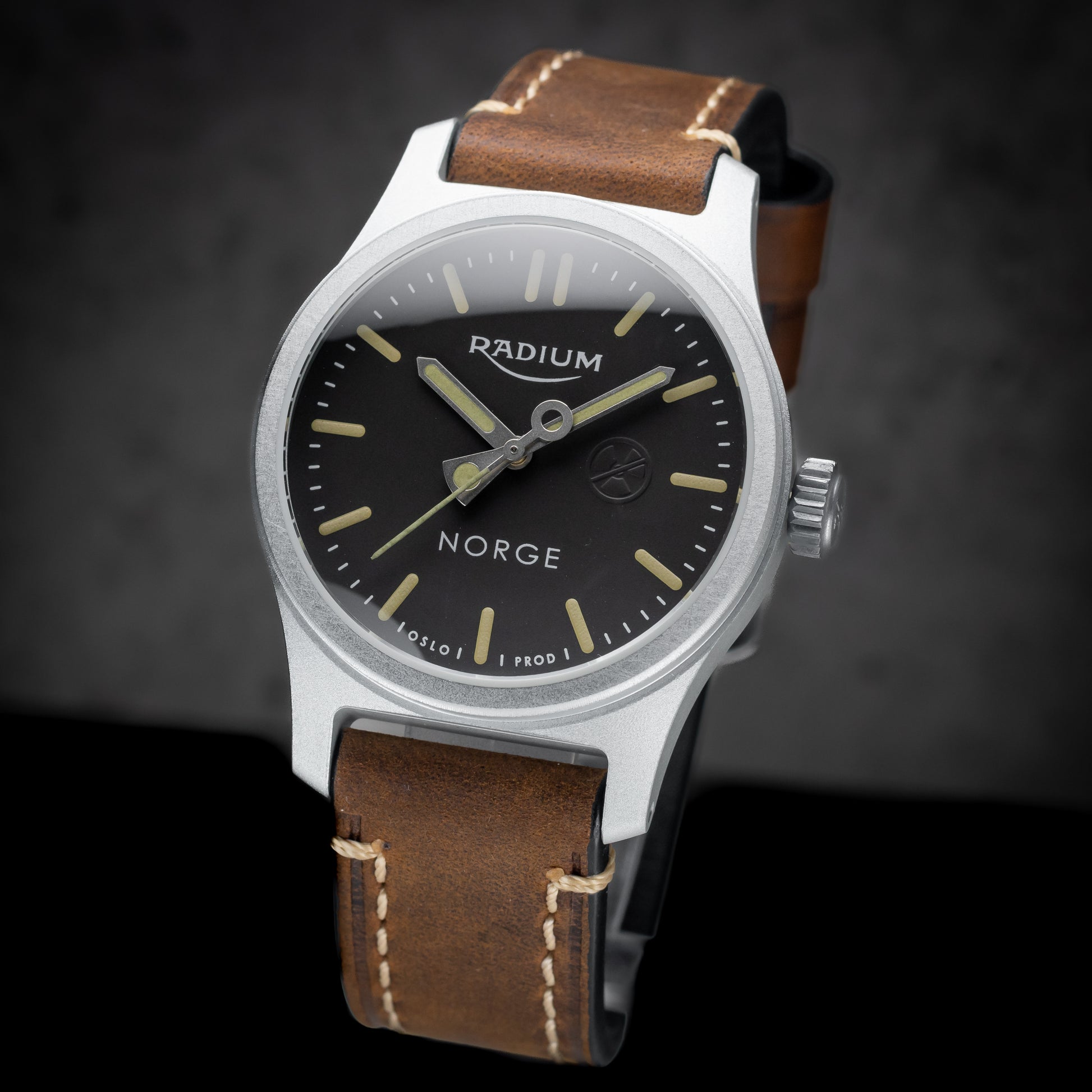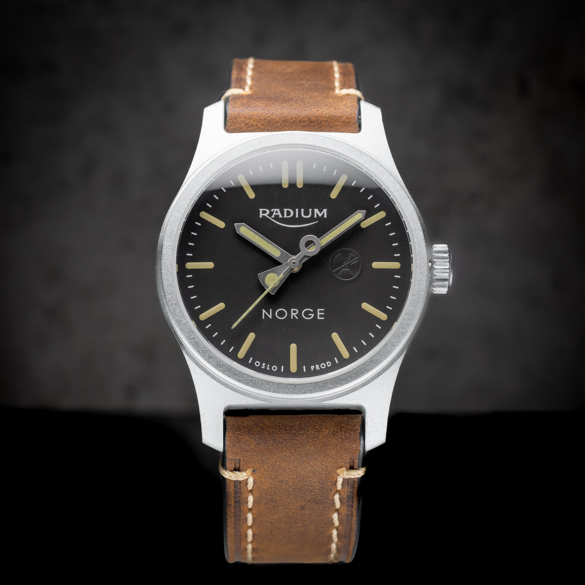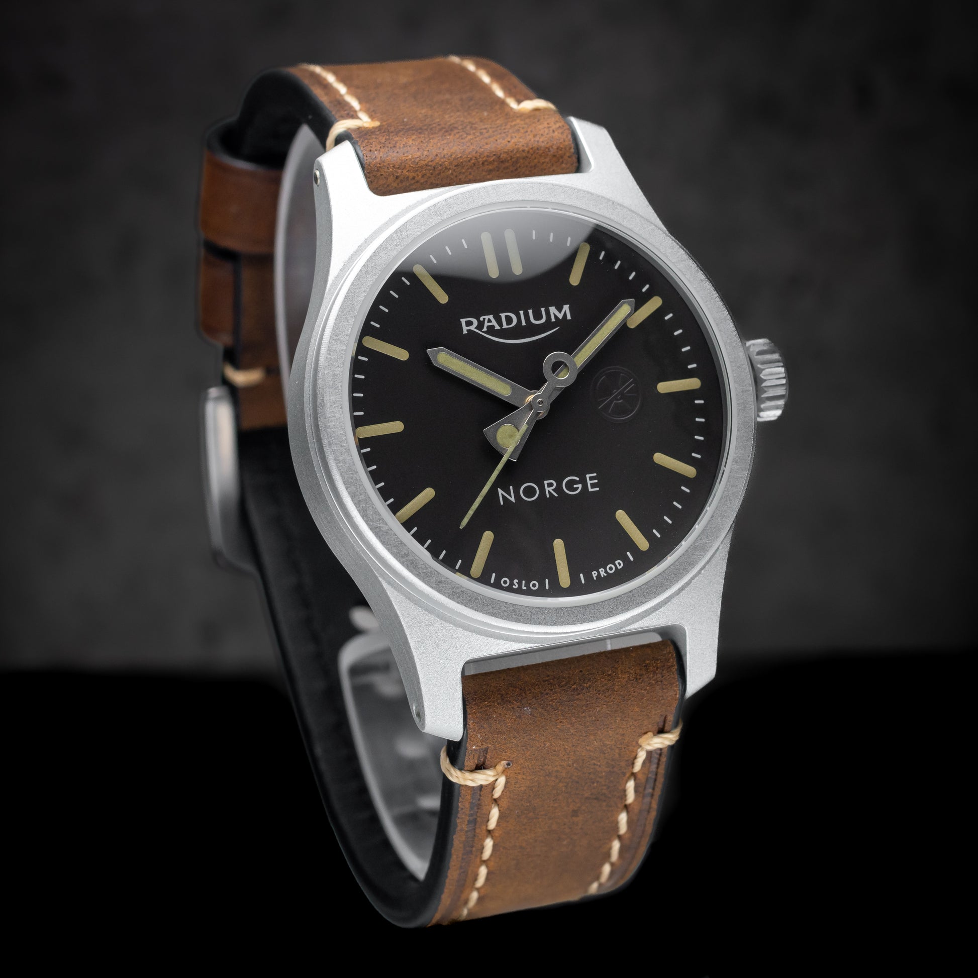 Featuring its dark Tobacco dial illuminated with vintage-inspired Radium SuperLuminova, this is our most iconic and classic model. With its discreet size, robust crown, and unmistakable design, this watch is a dependable and stylish choice.
