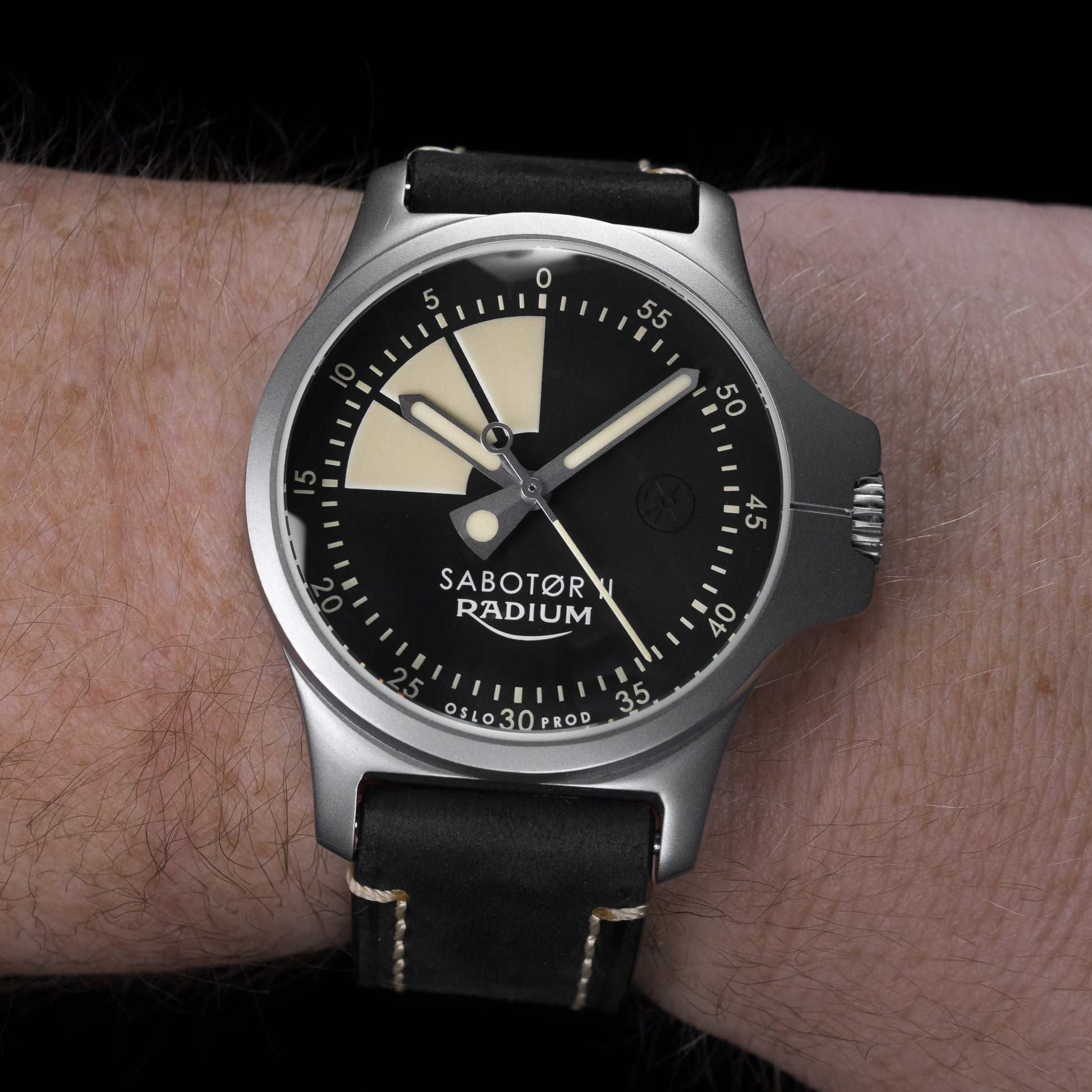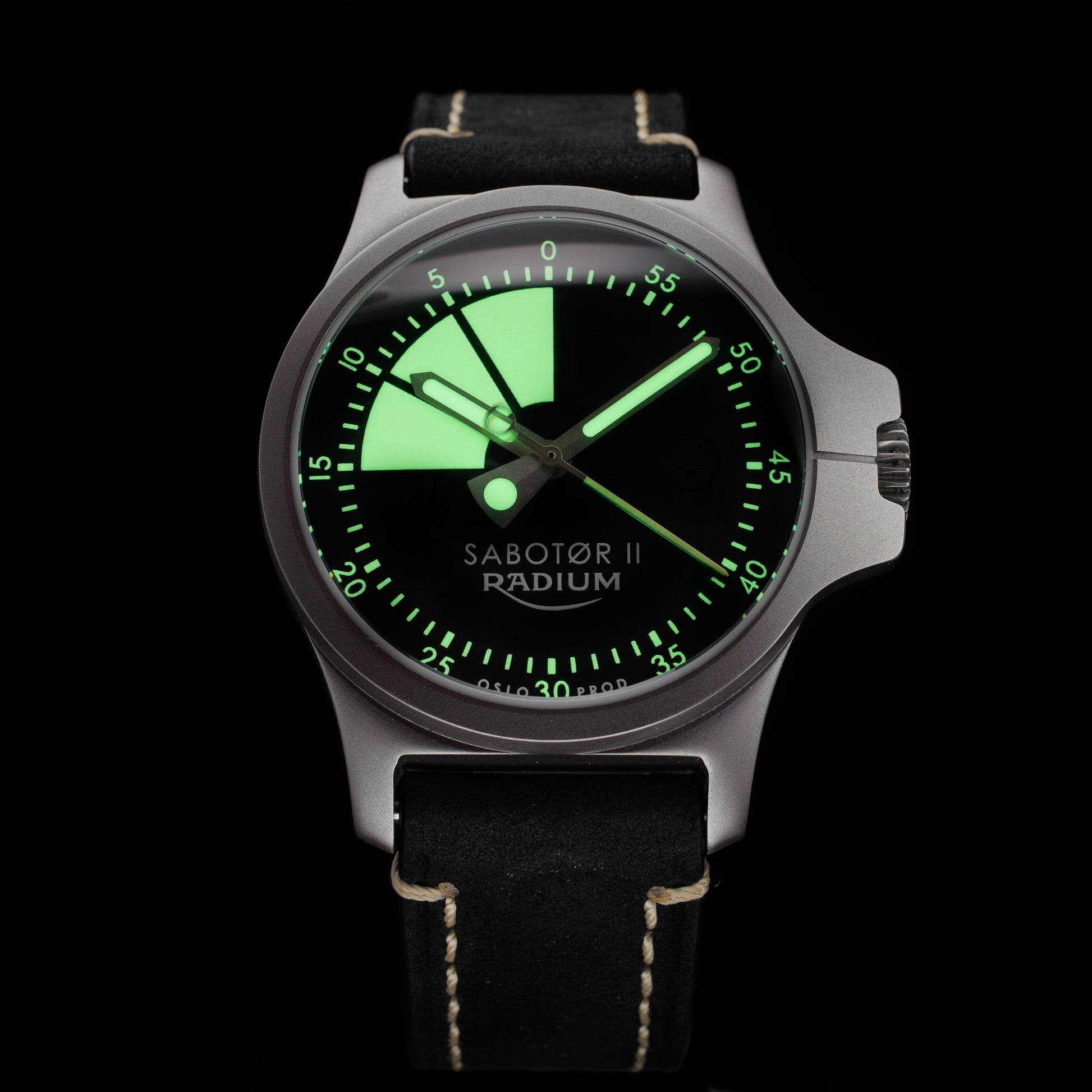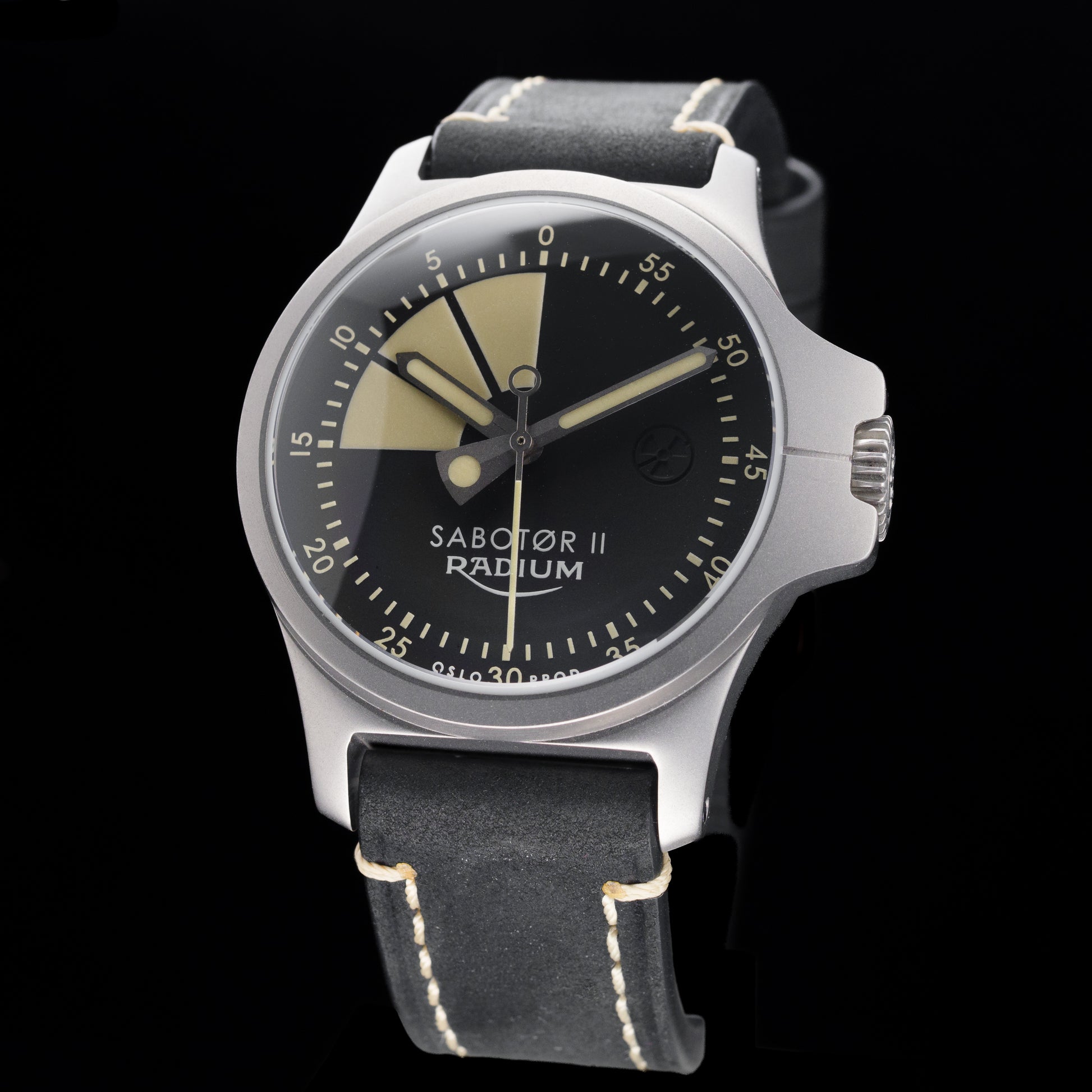 The most iconic and beloved version of Radium Sabotør is unmistakable with its distinctive countdown sectors. Numerals on the dial count down, clearly indicating the number of minutes or seconds remaining until the next full hour. SuperLuminova on sectors, indices, and numerals ensures optimal visibility.